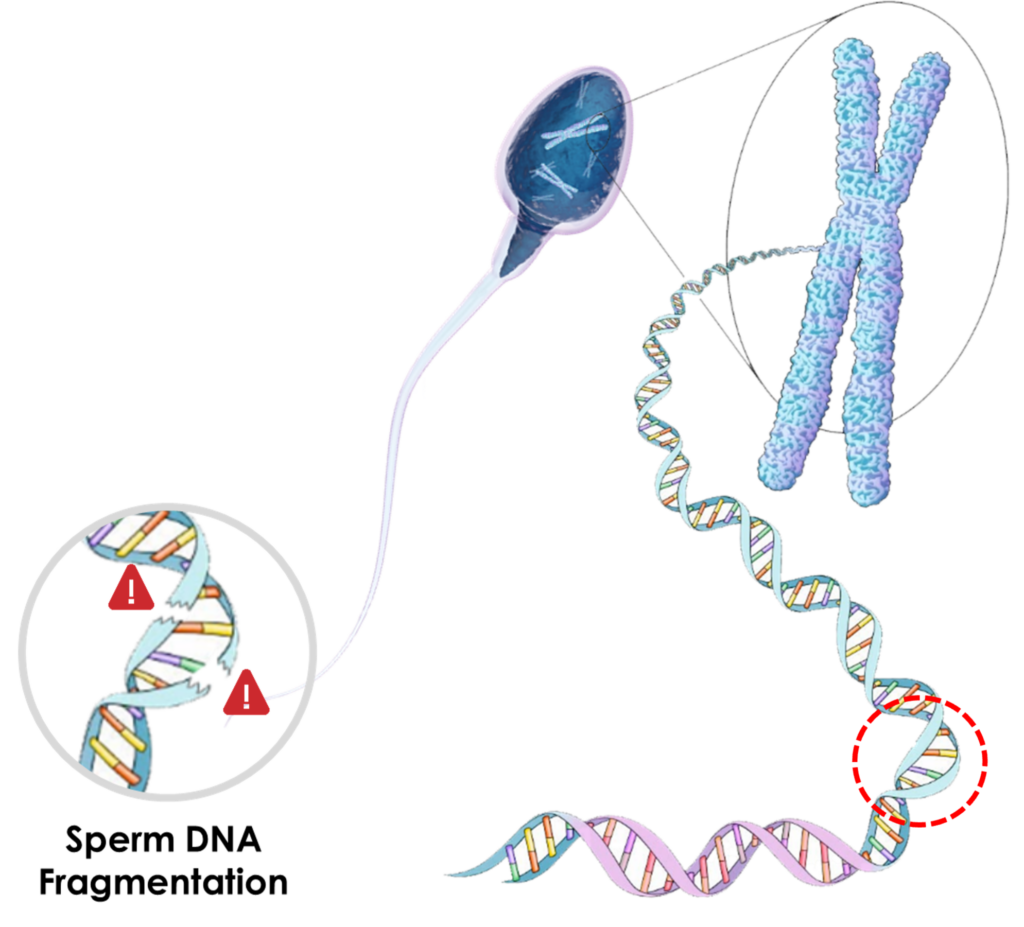 Có thể hình dung DNA như một sợi dây dài cuộn chặt trong nhân tinh trùng. Khi sợi dây này bị đứt gãy hoặc rối loạn cấu trúc, thông tin di truyền sẽ không còn nguyên vẹn. Hệ quả là việc thụ tinh có thể thất bại hoặc phôi thai hình thành nhưng không phát triển bình thường, dẫn đến các nguy cơ như: dị tật bẩm sinh, sẩy thai,… kể cả trong thụ thai tự nhiên hay khi thực hiện các kỹ thuật hỗ trợ sinh sản.